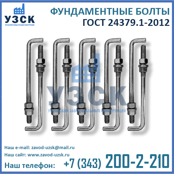 Уральский Завод Стальных Конструкций осуществляет изготовление болтов анкерных фундаментных в следующих вариациях: