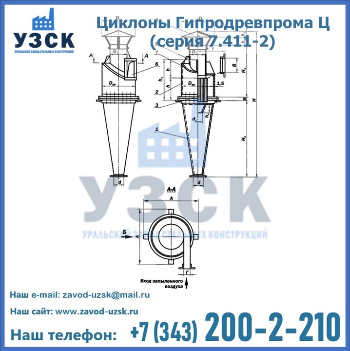 Главная > Пылеулавливающее оборудование > Циклоны Гипродревпрома Ц (серия 7.411-2)