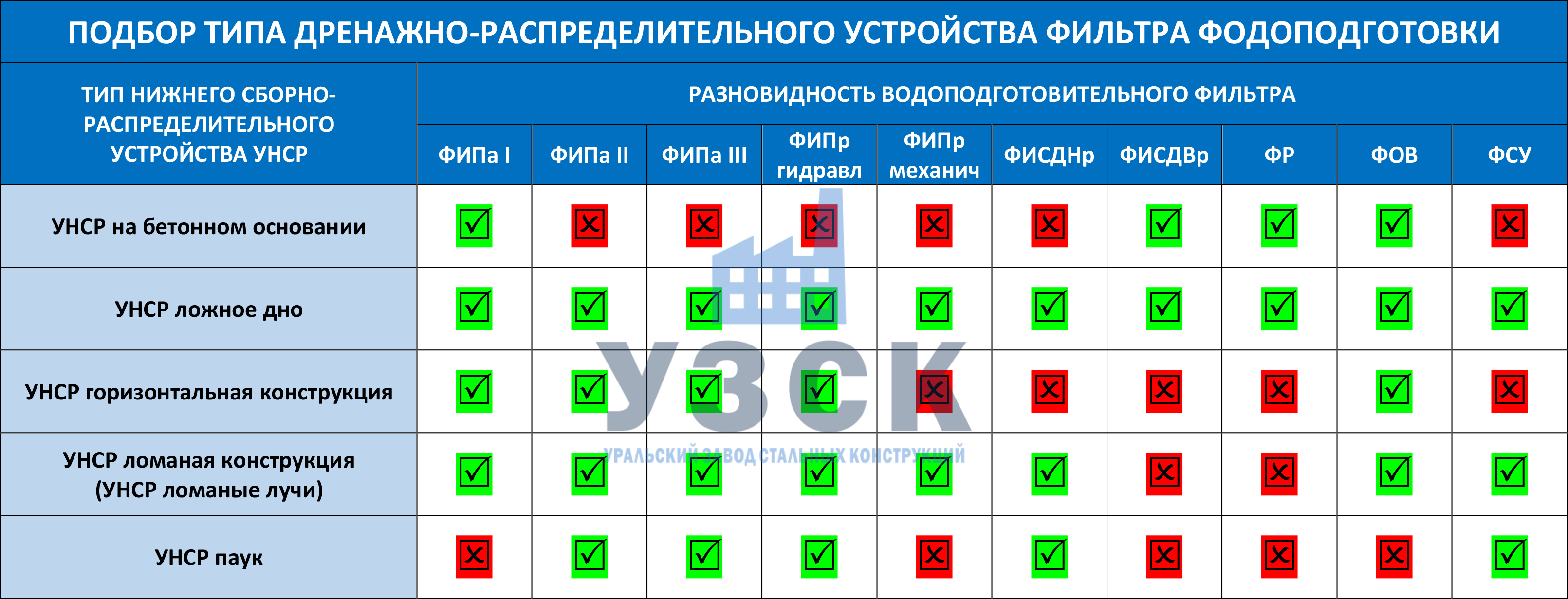 Другое наименование устройства УНСР – нижнее дренажно-распределительное устройство НДРУ (нижнее распределительное устройство НРУ).