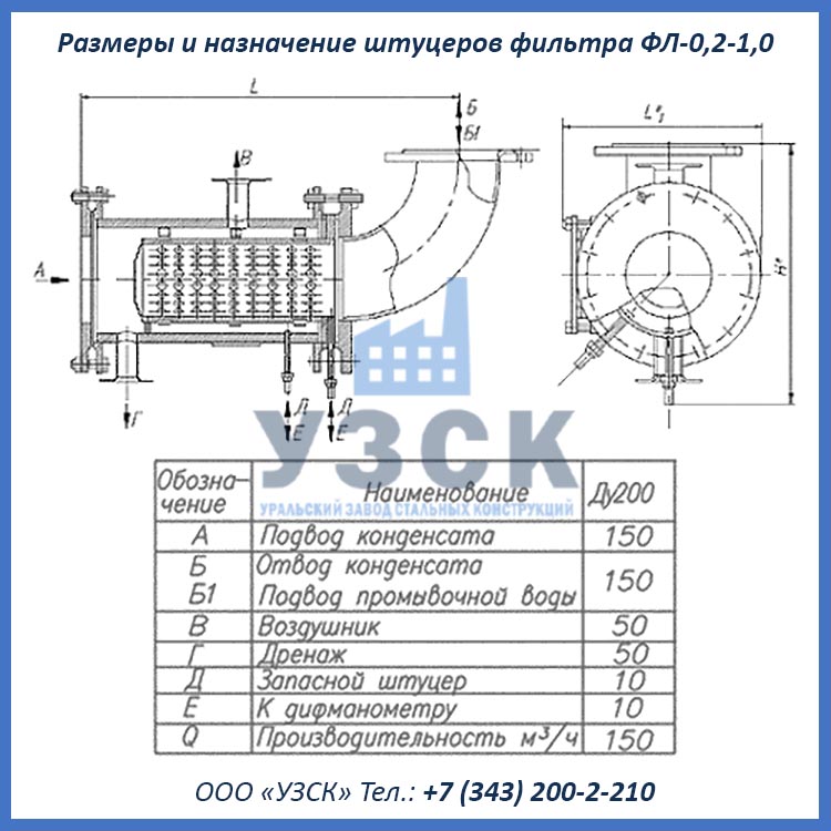 Фильтр ФЛ-0,2-1,0 представляет собой фильтр-ловушку ионитов с диаметром условного прохода 200 мм и устанавливаются на участок трубопровода после ионитного фильтр. Назначением фильтра ловушки ФЛ-0,2-1,0 является удаление из уже очищенной воды случайно попавших частиц фильтрующих материалов (ионитов).